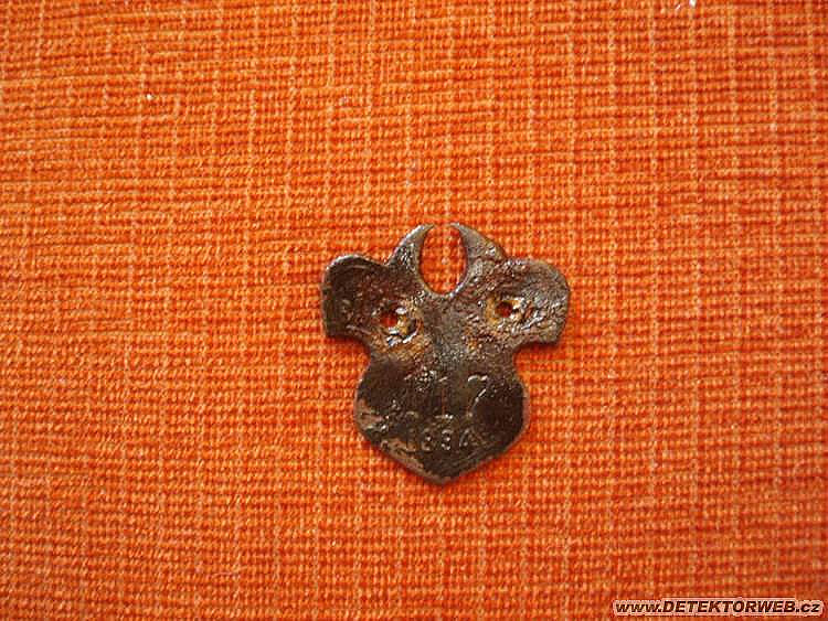 3známka-evidenční ru, materiál mosaz. Očko prodřené směrem nahoru a tím došlo k ztrátě známky, jelikož očko nemělo výstuž až od roku 1920.můžeš se mi ozvat na meil díky moc
