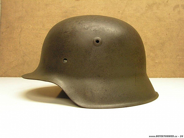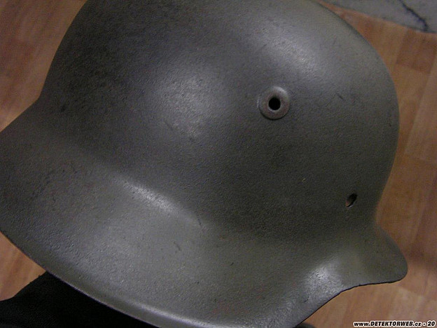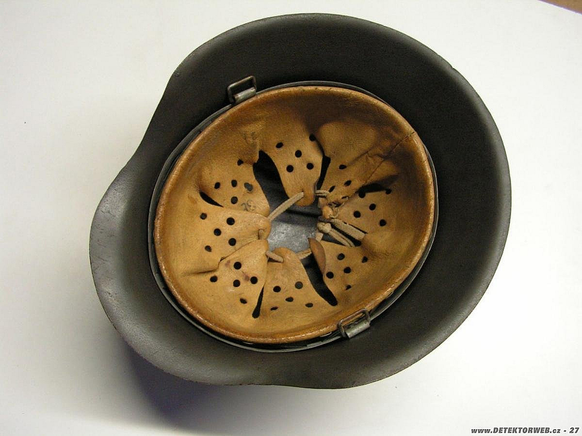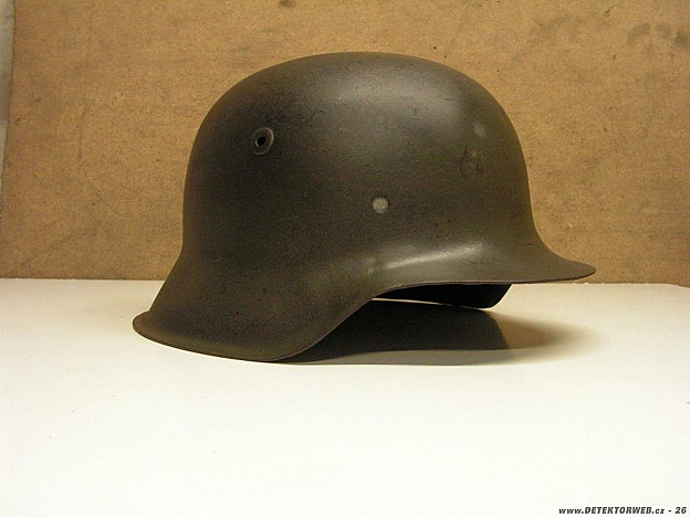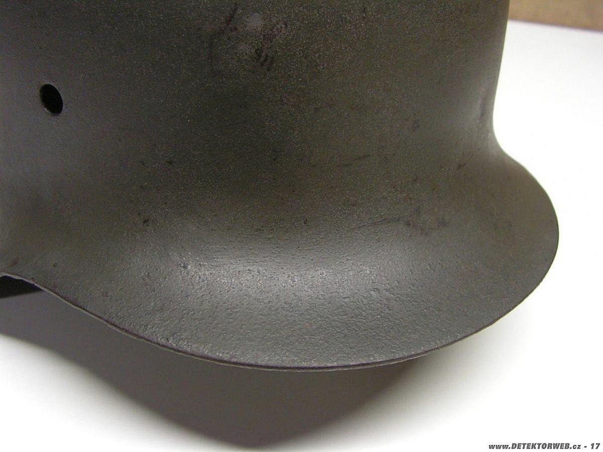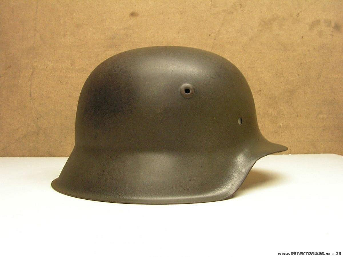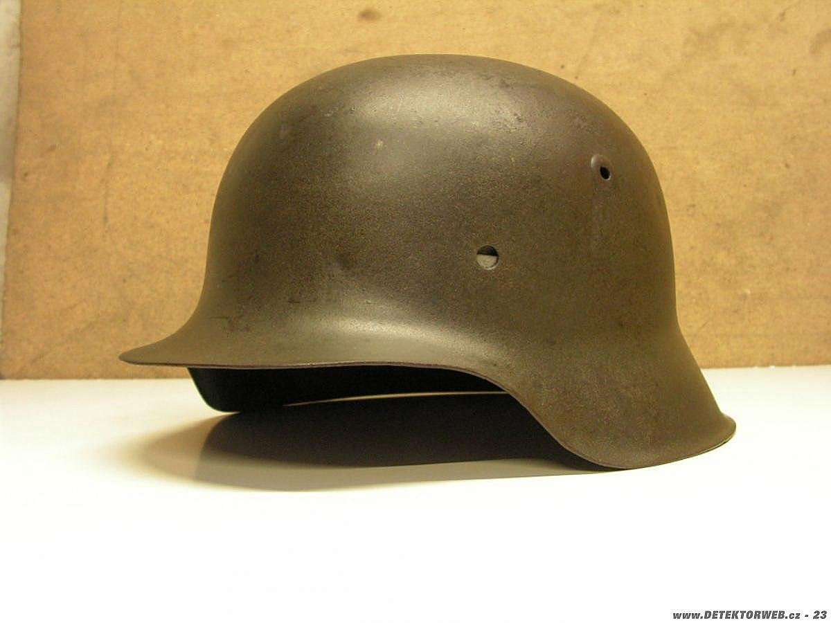 Zdar všichni, tak se mi do rukou na očistu dostal jeden starý hasič s origo vnitřkem. Kamarád ji měl doma na půdě asi tak 25 let. Získal jí tak, že jako mladý, když makal v místních pekárnách, tak jednoho dne dostal za úkol vyklidit starý sklad CO. Měl vzít Avii valníka a všechny staré helmy, masky a nějaký další bordel ze skladu odvést do šrotu. Tahle helma prý byla to jediné, co si z celého kontasu tenkrát nechal. A to mi říkal, že těch helem tam pak bylo asi cca 3/4 kontasu :-o No jo no, co člověk nadělá, jeho to dřív nějak dvakrát moc nebralo a hlavně ještě tenkrát ty helmy nebyly za takový prdy jako teď.No a teď k helmě. Jestli se nemýlím, tak by to měl být vzor M42. Na očištění jsem se inspiroval vašimi radami s odlakovačem nehtů a musím říct, že to fungovalo perfektně. Pod černou vykouklo asi tak 70% původní barvy WH. Sám jsem byl překvapený s výsledkem. Ted už mu jen sháním origo cvoky a podbradník.