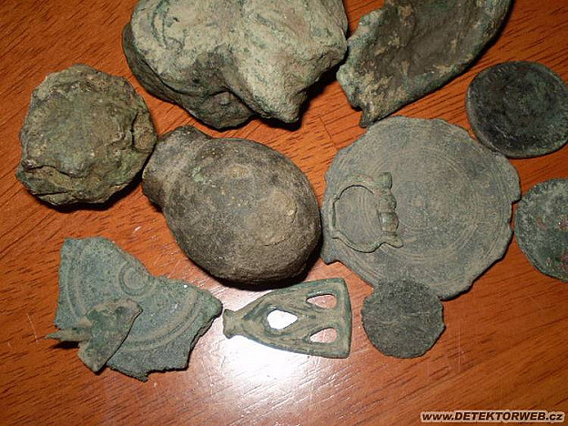 , kromě sestercie Hadriana myslím, že na 1 a 2. fotce je mince Trajána (část opisu Nerva Traian), tu přezku a kování odhaduji spíš na ranný středověk