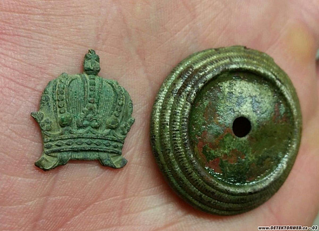 Posílám na pokuk pár nových kousků zpoza cívky detíku. Největší radost udělala ta korunka z RU orla. Je o dost větší než ze znaku z RU přezky, Vypadá z RU čaka a navíc jsem nedávno našel pravděpodobně i to lízátko z čaka, bohužel i bez toho středového znáčku. Zkouším dohledávat zbytek orla, bohužel zatím bez úspěchu.