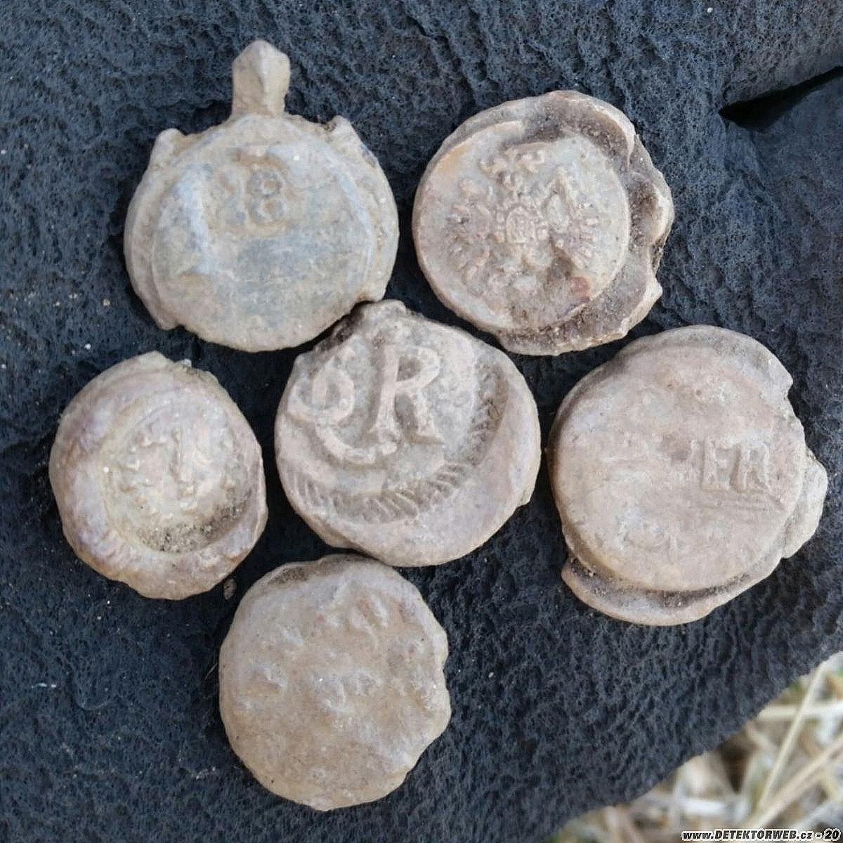 Zdravím všechny krtky.Posílám na pokuk pár nových kousků zpoza cívky detíku. Největší radost udělala ta korunka z RU orla. Je o dost větší než ze znaku z RU přezky, Vypadá z RU čaka a navíc jsem nedávno našel pravděpodobně i to lízátko z čaka, bohužel i bez toho středového znáčku. Zkouším dohledávat zbytek orla, bohužel zatím bez úspěchu.