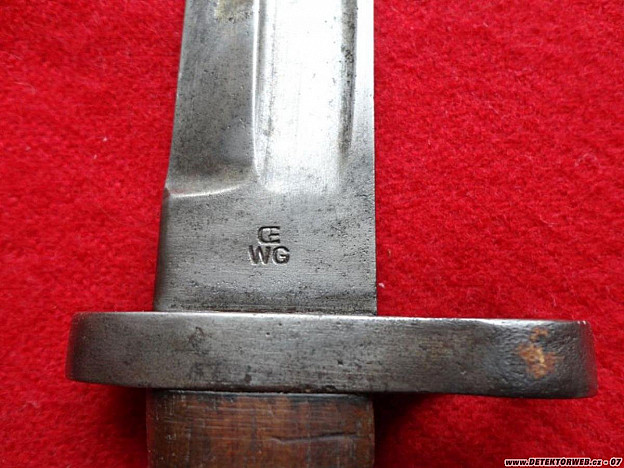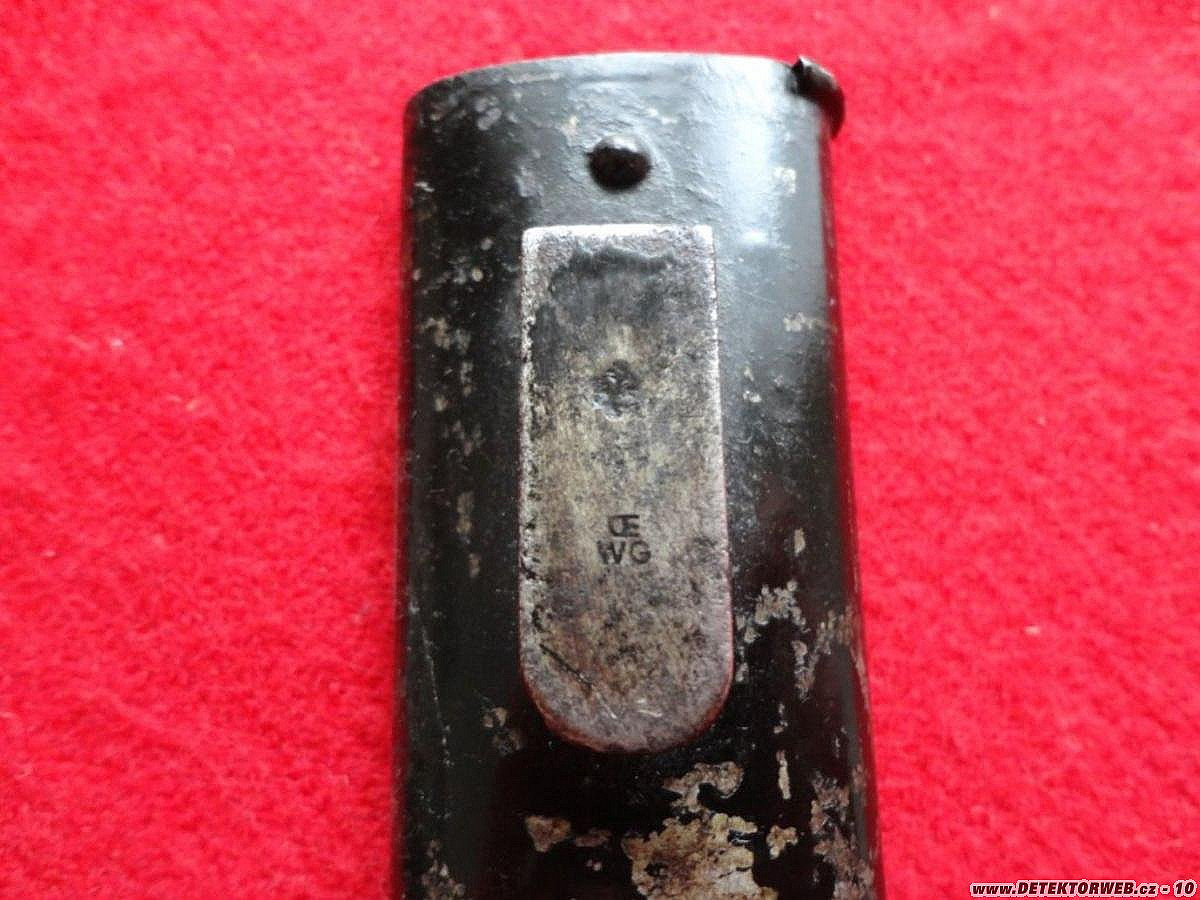 Vráťme sa teraz k bodáku, ktorý je predmetom tohto príspevku. Bodák je v nálezovom a nedotknutom stave, jeho ošetrenie sa obmedzilo iba na utretie silnejšej vrstvy starého konzervačného oleja. Čepeľ je rozmerovo zhodná s bodákom vz. 1888, je pomerne masívna a hrubá. Po obidvoch stranách má hranatý výbrus. Ostrie čepele nesie známky jemného dobového brúsenia, ale ináč je bez zásekov alebo iných deformácií. Na jednej strane je značená výrobcom „OEWG“. Priečka bodáku je jednoduchá, pričom priemer očka je vo veľkosti, aby šiel nasadiť na zbraň s kalibrom 6,5 mm. Značenie na priečke je „50. W 1“. Rúčka je pomerne zaujímavá a to vďaka jej unikátnemu tvaru, okrem toho sa však veľmi nelíši od bodákov Mannlicher. Drevo na črienkach je ešte stále zdravé a má aj zopár dierok od červotočov. K bodáku sú črienky pripevnené dvoma nitmi. Uzamykací mechanizmus uložený v hlavici funguje bezchybne až do dnešných čias. Hlavica bodáku je značená z každej strany rumunskými armádnymi značkami. Puzdro je vyrobené z kovového plechu, má pôvodnú čiernu farbu. Nosec bodáku je značený výrobcom „OEWG“ a pravdepodobne rakúsko-uhorským orlom – ale to si nie som istý. Tento bodák mám v zbierke už veľmi dlho, získal som ho ešte na základnej škole výmenou za nejaké drobnosti od spolužiaka. Verím, že sa Vám bodák bude páčiť, aj keď mi je ľúto, že nepoznám presne jeho nálezové okolnosti. PetkoZberatel