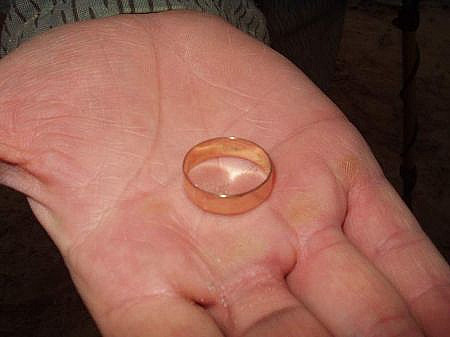 Prtkin a Vráťa se pak střídali s jedním detektorem a lopatkou, nezdálo se že by jim něco chybělo. Když nastal čas a Prtkin s Vráťou musel vyrazit domů na povinnou rodinnou návštěvu, šel jsem s ním k autu uklidit Fishera. Ještě než stihli nasednout a odjet, ozval se Myšákův veselý smích, blahořečící paní která v těch místech laskavě ráčila ztratit svůj decentně zdobený zlatý prstýnek :-)) Vrátil jsem se tedy sám zpátky s napřaženou motyčkou, ale prostě jsem neměl to srdce ho tam zakopat (ostatně, co kdyby ještě něco našel, vžycky to můžu udělat o chvíli později). V klidu jsme tedy v redukované sestavě pokračovali, i když už začínala být trochu zima (tímto děkuji Prtkinovi za teplý čaj z kelímku a následný opar).