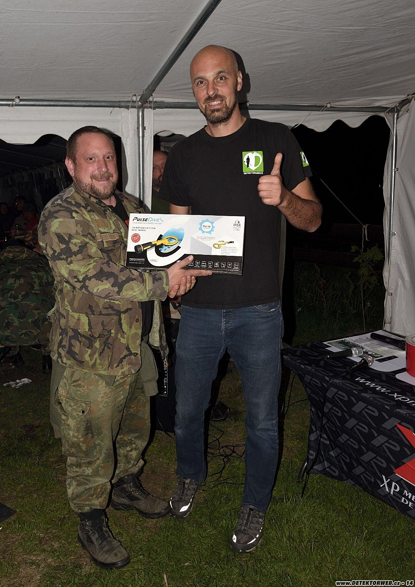 Až přišlo úplné finále: Ve hře byly letos už čtyři detektory včetně naprosté novinky, detektoru k hledání pod vodou, Nokta Makro Pulse DIVE SCUBE, který vyhrál Zdeněk z Prahy. Třetí cenu- detektor Teknetics Eurotek PRO vyhrál Rudolf z Olomouce. Pro druhou cenu – MAKRO GOLD RACER – se prodral davem Filip z Ostravy Výherce hlavní ceny nemohl vytáhnout z osudí nikdo jiný než Gary Blackwell. První cena - XP Deus X35 28 RCWS4 - putoval se šťastným výhercem Markem do Tachova. A ještě foto na památku s Garym Ale i dobrá knížka potěší :-)