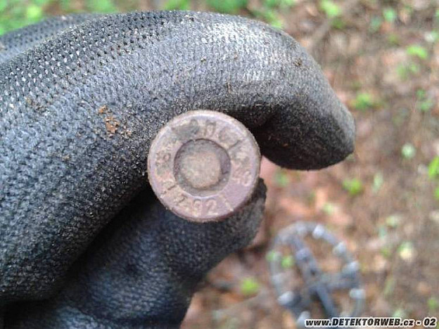 31. 05. 2013, 14:58Rumunské náboje 7,92x57, stabilizátor z rumunské minometky a střepina ze zapalovače k ní, zásobník je opravdu škorpion :