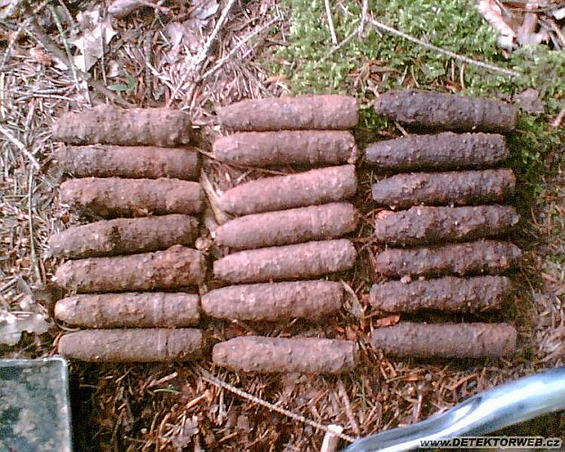 08. 07. 2008, 09:21Nejsou to puškové granáty, ale projektily z 20mm FLAKU. Někdo je kdysi zbavil nábojnic, asi kluci po válce potřebovali prach na experimenty... Nicméně tyto střely obsahují trhavinu, takže jsou také nebezpečné!