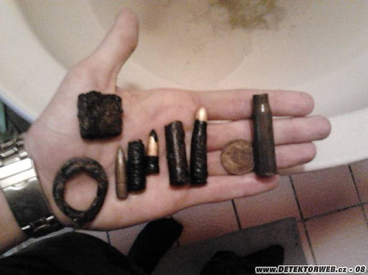 Opravdový zlom nastal v tu chvíli, kdy mi hned u břehu zazněl silnější signál. Jelikož jsem věděl, že v těchto místech byli Rusové, tak jsem očekával třeba přilbu nebo rovnou nějakého soudruha se zlatem v puse, ale asi jeden centimetr pod zemí na mě vykoukl známý, podezřelý tvar něčeho, co vypadalo jako pumička nebo granát. Vyrýpnul jsem to ze země a odfotil, zapálil si a zavolal policii. Byli na místě do deseti minut. Pánové byli příjemní a dalo se nimi komunikovat do chvíle, než jeden řekl, že "Takový hledače úplně nenávidím".