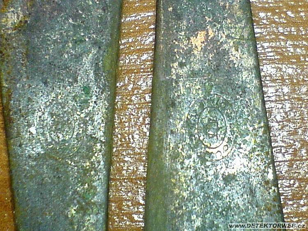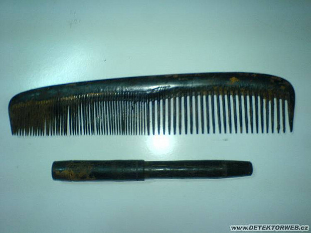 Štestí se unavilo a sedlo pořádně už i na mne a musím podotknout že ne jednou. Zhruba před rokem jsem natrefil na lokalitku kde si němci poschovávali do země svých pár věci. Lokalita je strmé zalesněné a špatně schůdné úbočí kopce hodně kamenité a na tom místě bych normálně nic nečekal. Na fotce je vidět pouze bedna která byla sice zakopaná ale prázdná. Bohužel pří přetahování fotek z telefonu došlo k tragické události, smazaly se mi nenávratně všechny fotky z vykopávání ostatních nálezů. První bedna byla prázdná VIZ. FOTO, druhé bylo pouzdro na masku{péro, knížka, hřeben, malá peněženka ve které nic nebylo a spousta brouky rozežraného papiru}. Hned vedle bylo pouzdro asi na dělostřelecký projektil{plné zabalených příborů}. Na fotkách je vidět hřeben bez nápisu nebo značky, plnící péro s nápisem na hrotu PEGA 6 SPECIAL a to co zbylo z vojenské knížky. Vše bylo zabaleno v novinových papírech. Lžíce jsou všechny stříbrné. Rukojeťi nožů a vidliček jsou asi postříbřené a na spodní řadě příborů je vidět poškození kde se rozpadá nějaká slitina taktéž postříbřené. Vše je zatím nečištěno protože nevím jak odstranit nánosy oxidujícího železa aniž bych poškodil stříbro. Skoro rok poté jsem se nedávno vrátíl na oné misto s větší cívkou na detektoru DISCOVERY 2200 a kupodivu jsem kopnoul o kousek dále ještě další dvě bedny. To ale zase někdy příšte. Přeji všem aspoň jednou zažit ten pocit když se kopne poklad malý ale poklad...... JE TO NĚCO NEPOPSATELNĚ KRÁSNÉHO.