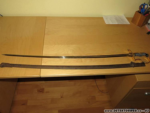 včera jsem si u souseda všiml zajímavého artefaktu. Vrátil se z hřiště (z oslav v naší vesničce) a s tím, že šavle slouží k pasování páťáků, když přecházejí na II stupeň. Tak říkám, ukaž, co to máš za divadelní šavličku a ejhle - nevypadala na to. Když jsem se vyptával dále, tak byla nalezena před časem na půdě během rekonstrukce. Údajně sloužila na parádenmarše. Kdo bude vědět více, tak jsem vděčný za komentáře.