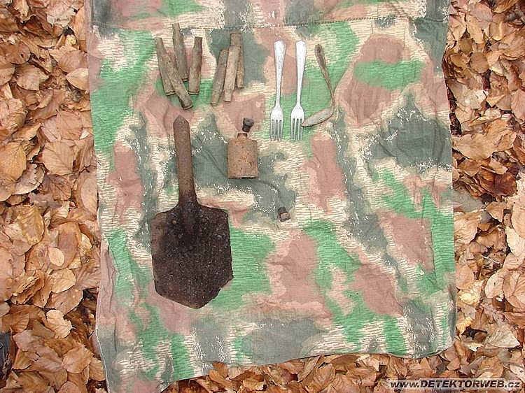Cesta bola dlha no oplatilo sa. Na vrchole bolo neskutocne mnozstvo zakopov a bunkrov. Hladame a hladame. Neustale pri nasich kopaniach nachadzame len municiu. A tak nebolo vynimkou ani teraz a na slnecne svetlo vykuklo par RGciek. Neskor sa ukazala lopatka neznameho povodu no ajtak skoncila v mojej taske :) Nasleduje dlhe chodenie a chodenie pod myslienkou co bude nasledovat dalej. Presuvame sa o nieco dalej, kde nachadzame dalsie minometky a rozne kusy prepraviek a kusy neznameho zeleza/plechu a hlinika.
