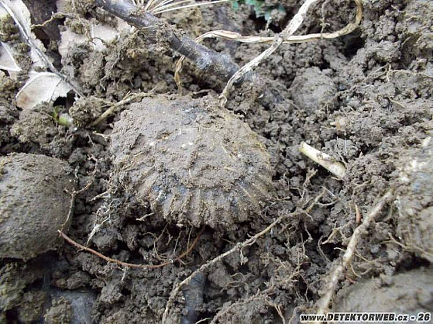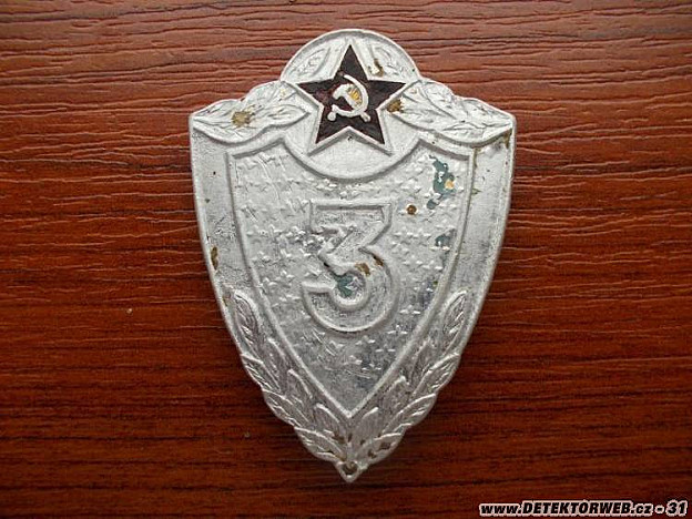 Pak je tam pár arsenbronzových knoflíků, slovenský dvacetihaléř z roku 1942, ruská kopějka z roku 1913, kokarda na poln&ia cute; čepka pro důstojníky a praporčíky, odznak specialisty 3. třídy (smalt už bohužel odnesl čas) a odznak BPPOV (při nálezu byl ještě barevný, ale než jsem ho donesl domů, tak se barvy slouply a rozpadly).