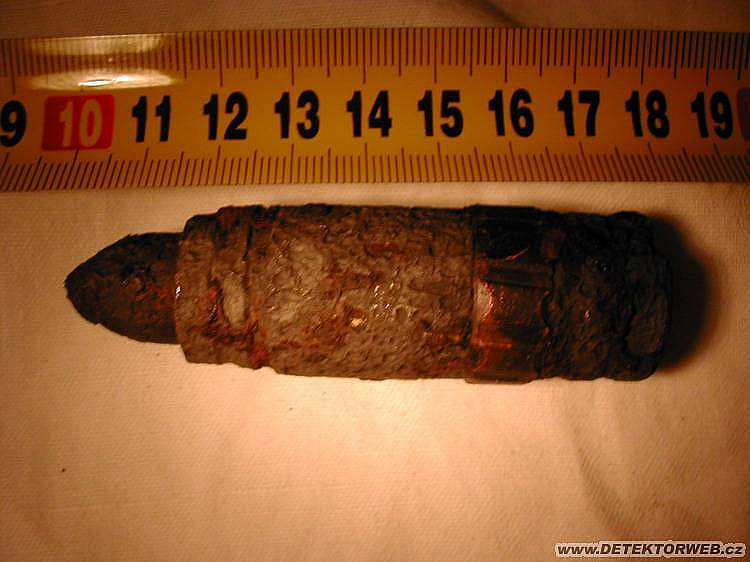 30. 04. 2009, 15:02Nejsem znalec, ale to na druhe fotce od spoda dle meho nazoru rus nebude. Nasel jsem jich cca 50ks na miste, kde meli Nemci cviciste. Nektere roztrhane a bez "spicky". Material - olovo.
