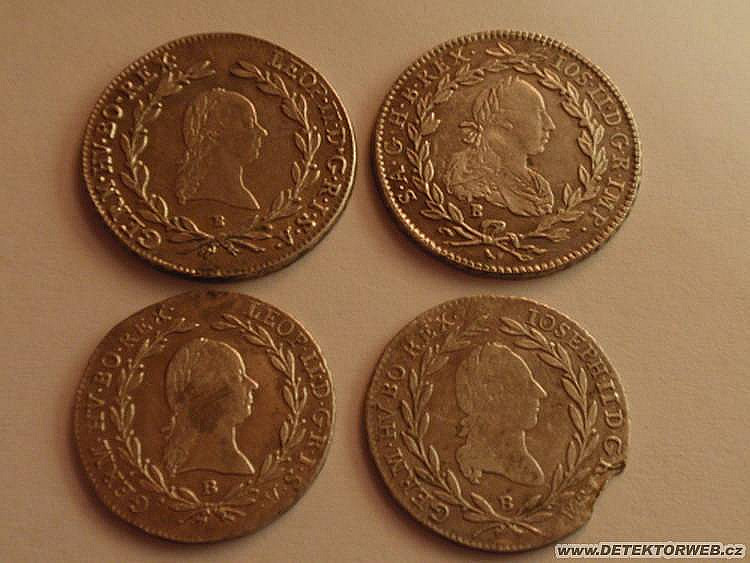 Bráchové jak jsou si podobný-Leopold II. a Josef II. , oba synové Marie Terezie. Na stříbrňáky z 18. století mám smůlu.