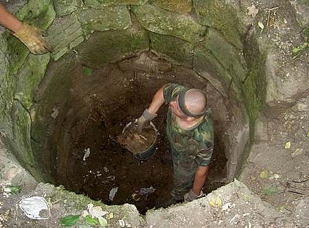 Na místě určení, jsme se ocitli těsně kolem poledne a posíleni špekáčky a pivem, nebylo nutné nás k práci pobízet. Jícen studny teď vypadal nevábně, Myšák se do toho pustil s nebývalým nasazením, igelitové tašky plné komunálního odpadu létaly z díry do vzdálenosti několika desítek metrů…