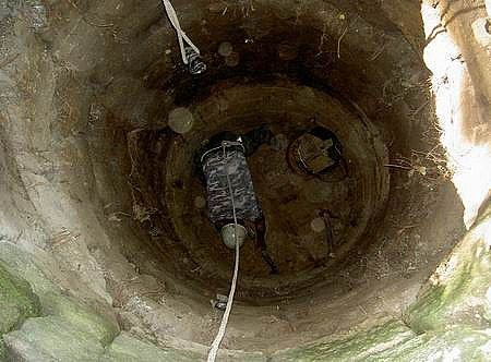 1/Studna je evidentně bez vody, neboť pískovcové stěny a suť jsou naprosto suché
