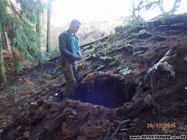 29. 12. 2015, 12:37Na takových místech ve svahu bývaly ukrývány bedny werwolfu-zhusta zajištěny proti neoprávněnému otevření. I nedávno byly nalezeny dvě.
