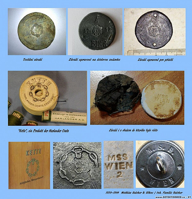 04. 12. 2018, 19:07Jen ještě malá poznámka. Nějak si všichni všímají jen toho kolečka s řetízkem, ale podle mne je důležité to druhé s nápisem MSS WIEN. To vlastně potvrzuje na co se ty kolečka používala a potvrzuje tu německou práci na kterou jsem dával odkaz, neboť bylo nalezeno i s obalem do kterého se olůvka všívala. A to není všechno. Obě olůvka jsou od jedné firmy. Nejprve Mathias Salcher a synové MSS WIEN. V roce1894 vzniká firma AG der k. k. priv. Harlander Baumwollspinnerei und Zwirnfabrik. Předmětem podnikání, zůstávala stále výroba všech druhů knoflíků a přezek, vč. kovového a tkalcovského zboží. Do této doby patří zátěžové olůvko s řetízkem, kdy přišla firma na trh s nití pod obchodním názvem KETTE. Říkalo se jí ocelová nit. Dokonce se domnívám, že do tohoto období spadá i další zátěžové olůvko označené H AG - Harlander AG.