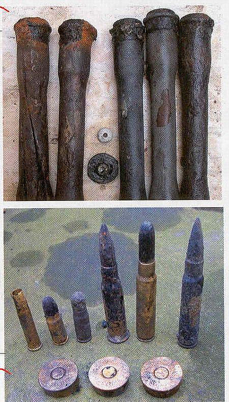 . K tomuto jen uvádím, že to co měo asi cenu, tj Archív SS je pryč (asi v někde Moskvě... ). Ze zbraní na foto co jsem identifikoval: č. 2) hlavěň dvojka a pažba (Mannlicher?) z lovecké pušky, uprostřed předek z pruské jehlovky Mod. 1862. Obr. č. 3) 2 torza loveckých tesáků (jeden v pochvě) a pod nimi kord německého burschenschaftu - široký koš původně vyplněn textilní vložkou v barvách studentského spolku (druhá polovina 19.stol. ). Obr. č. 8) torzo rakouské pušky pěchoty syst. Lorenz Mod. 1854 (pistole by těžko měla poutko na závěsný řemen). Podle tvaru kohoutu předělaná na mysliveckou pušku... Z celku nynějších nálezů - co mělo asi cenu je pryč, toto je "dobový" odpad (dnes samozřejmě v jiných realcích).