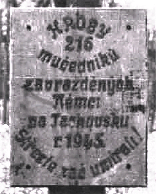 Hromadný hrob byl označen cedulí s českým a německým textem, že se tam nachází 37 mrtvol z Buchenvaldu. Že by někdo chtěl vyvolat dojem, že jsou tam vězni jen z Buchenwaldu?
