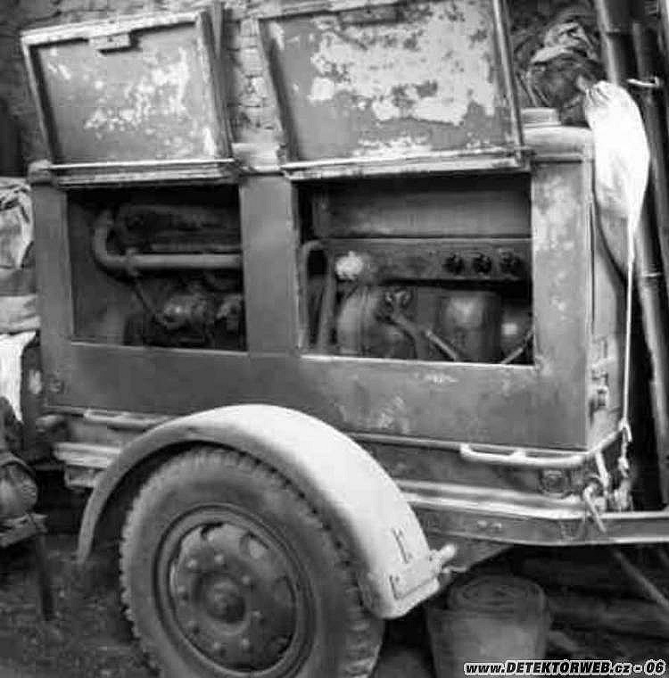Kapota z nákladního automobilu Saurer se málem nevešla do auta, jakej je to macek. Zde bych chtěl poděkovat kolegovi, co si říká rada_conrade za její identifikaci. Ze stejného vozu je i rám přeního okna. Déle se urodily články z PZ IV. , dvířka koňského povozu Hf. 7, dvířka z generátoru Sd. Ah. 23, Várnici, vrtuli z Hakla a držák na radiostanici.