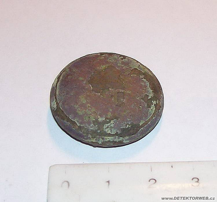 Knoflík s dirkami v zadu, je z 19 století. Klipsa bude z nějakého šperku.