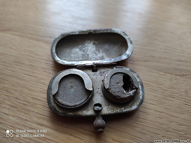 Pri hľadaní húb som v lese natrafil na malú mosadznú škatuľku. Po otvorení ma nečakal žiaden poklad len dve okrúhle dosadzacie plôšky, pod ktorými sú pružiny. Myslím si že by mohlo jednať o staršiu peňaženku. Mince sa zakladali práve na tieto plochy. Škatuľka nesie po okrajoch ešte zbytky striebrenia. Rád si vypočujem aj váš názor ak sa niekto z takým predmetom stretol, prípadne pozná značenie. Naším krajom sa prehnali obe vojny tak môžem len typovať z ktorého obdobia je tento predmet.