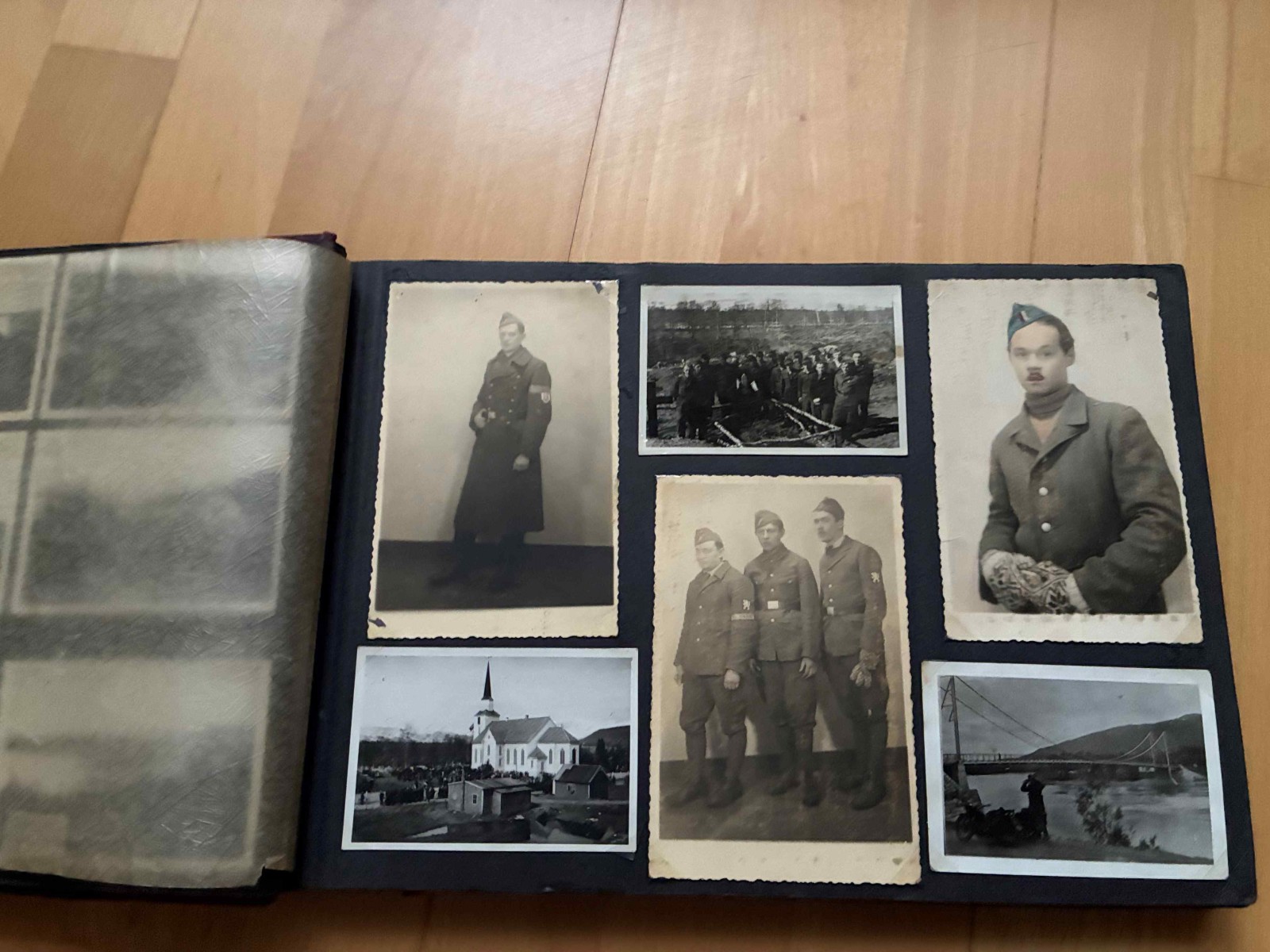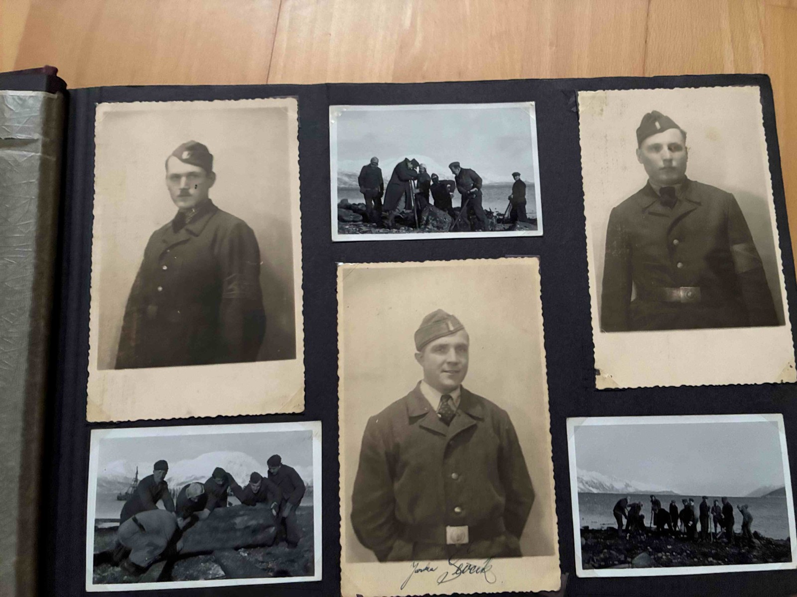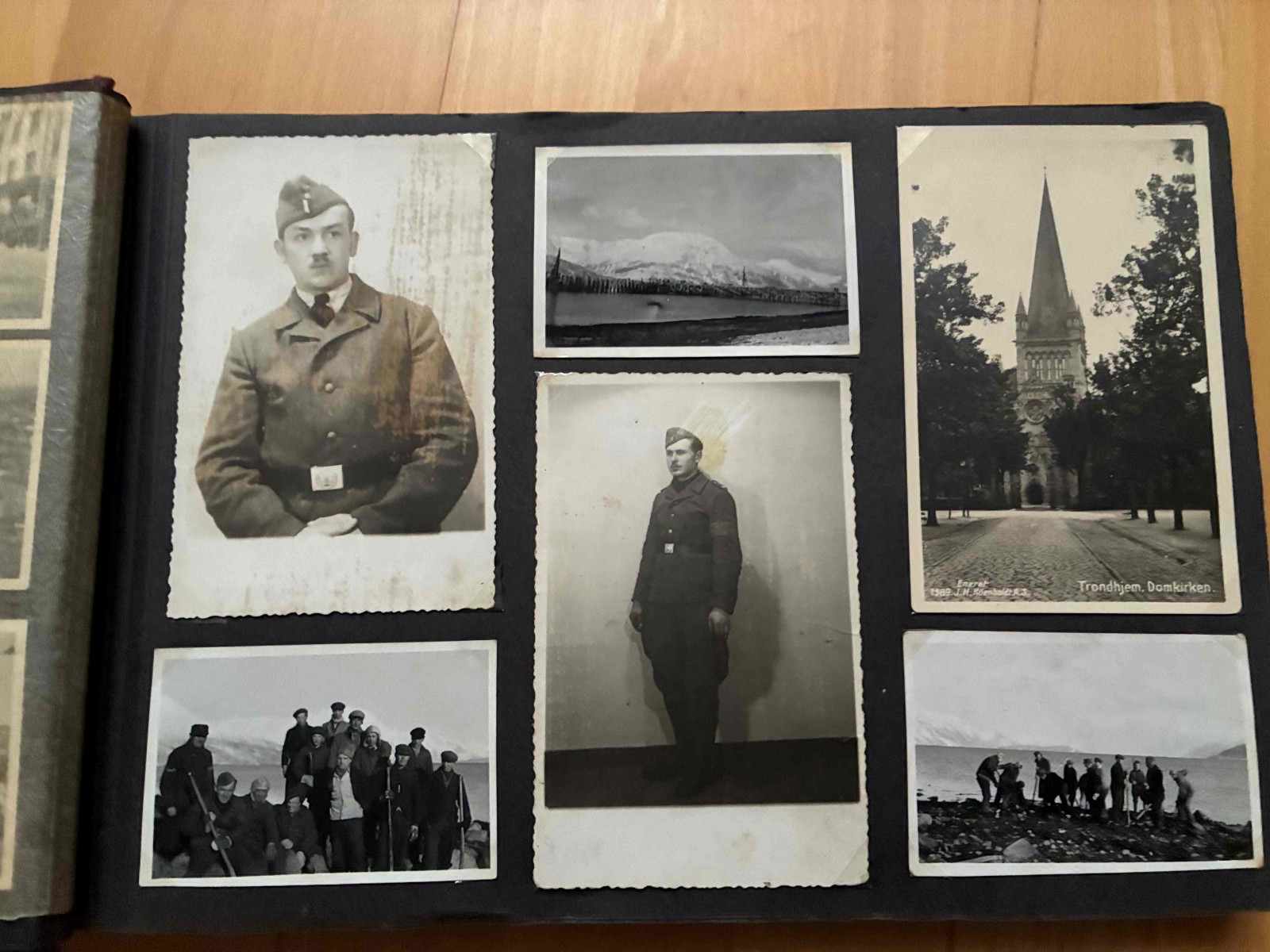 V zbierke mam album, aky sa casto nevidi. Je to album prislusnika Protektoratu, ktory bol na nutenych pracach v Norsku. Zachytava roky 1942-1945 a je v nom celkovo 391 fotografii (z toho je 191 fotiek tykajucich sa nasadenia v Norsku, zvysok su komercne dobove fotky o Norsku). Zaujimave je to spektrum uniforiem, mnohe fotky su vzadu popisane. Maju tam uniformy WH alebo RAD, niekedy s rukavovym oznacenim ORGANISATION TODT alebo DEUTSCHE WEHRMACHT a nasivkou ceskeho leva. Zaujimave su fotografie s textilnou paskou CZECHOSLOVAKIA, ktora je aj v albume nalepena. Osobne si myslim, ze to bolo uz pred repatriaciou v roku 1945. Ako vidiet z fotiek, kontakty s domacim obyvatelstvom (hlavne zenskym) boli jednou z mala svetlych stranok ich nasadenia.