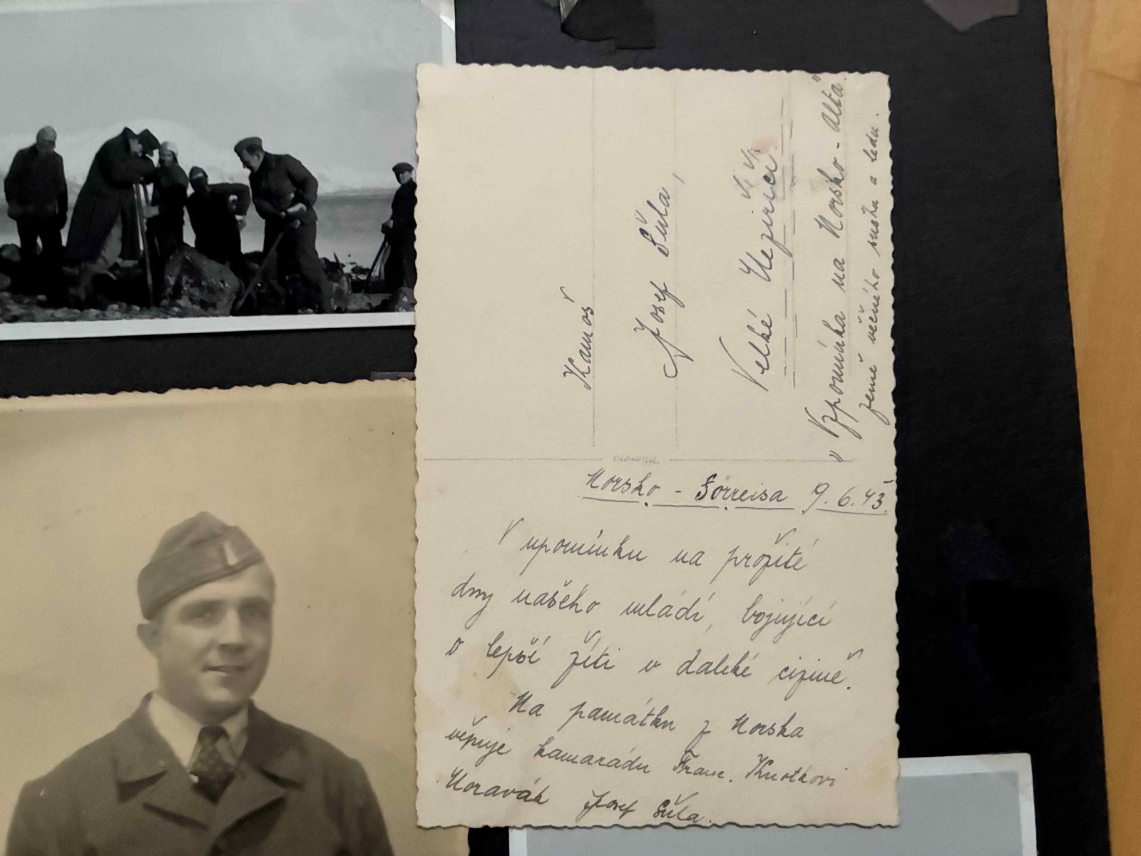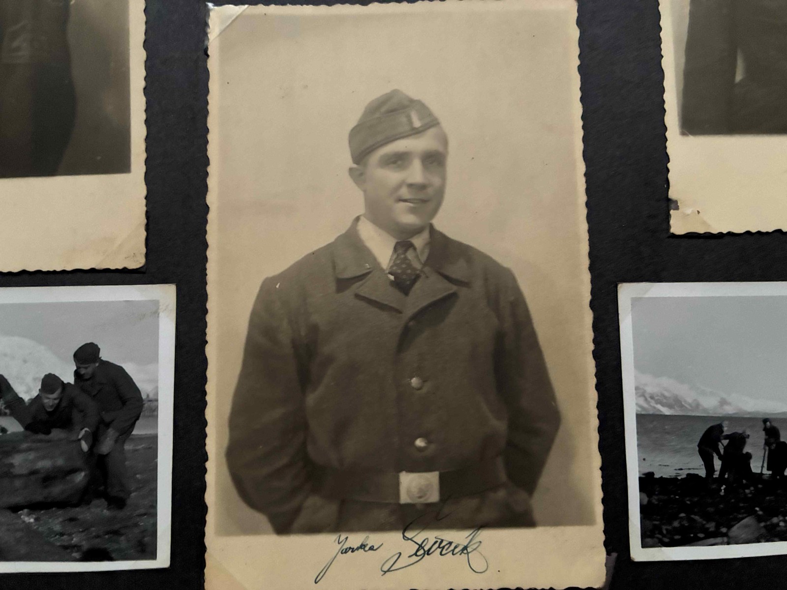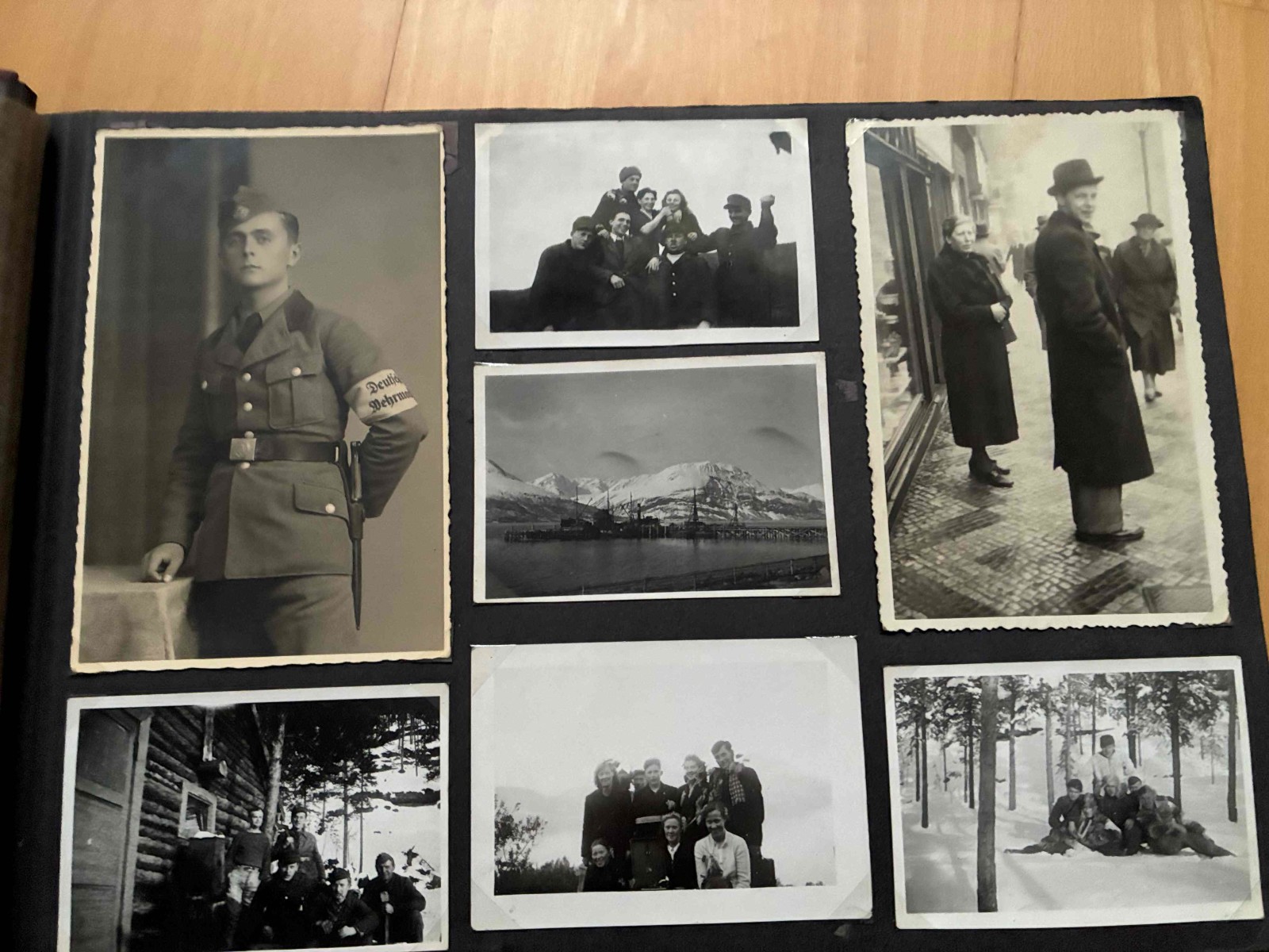 V zbierke mam album, aky sa casto nevidi. Je to album prislusnika Protektoratu, ktory bol na nutenych pracach v Norsku. Zachytava roky 1942-1945 a je v nom celkovo 391 fotografii (z toho je 191 fotiek tykajucich sa nasadenia v Norsku, zvysok su komercne dobove fotky o Norsku). Zaujimave je to spektrum uniforiem, mnohe fotky su vzadu popisane. Maju tam uniformy WH alebo RAD, niekedy s rukavovym oznacenim ORGANISATION TODT alebo DEUTSCHE WEHRMACHT a nasivkou ceskeho leva. Zaujimave su fotografie s textilnou paskou CZECHOSLOVAKIA, ktora je aj v albume nalepena. Osobne si myslim, ze to bolo uz pred repatriaciou v roku 1945. Ako vidiet z fotiek, kontakty s domacim obyvatelstvom (hlavne zenskym) boli jednou z mala svetlych stranok ich nasadenia.