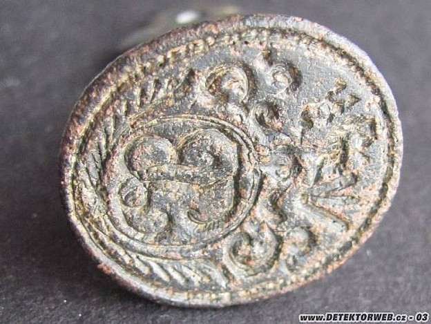 Prosím o určení stáří (1650? 1750?) a majitele pečetidla. Lev drží tři válečky - že by svitky papíru (že by šlo o písaře)? Díky!
