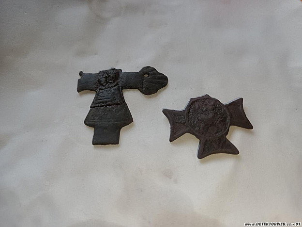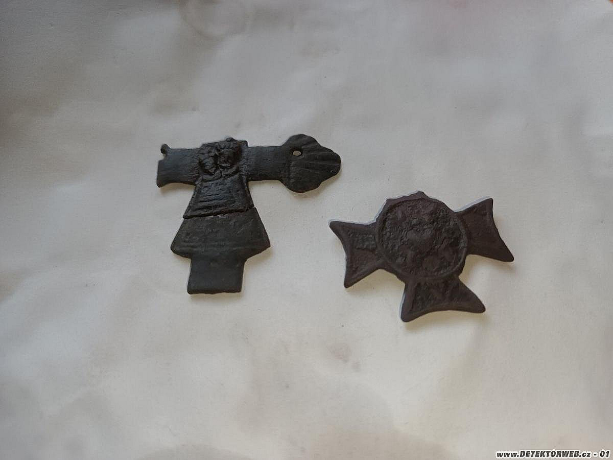14. 10. 2021, 11:26Ahoj, ohledně prvního křížku to vypadá na poutní křížek mariánské pouti, tedy vázané na nějaké konkrétní místo. V tomhle případě možná pouť Brno - Mariazell z 19. stol. Druhý křížek nevím. Info mam z netu z podobných nálezů, tak to ber s rezervou. Kopu zdar.