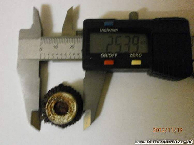 O kousek dál bylo to ufo na dalších fotkách, materiál hliník a železo. U toho bych prosil znalce o pomoc s určením. Nakonec ten lesík vydal ještě ten klíč. Ale nevím, zda pochází z německé techniky. Každopádně byl stejně hluboko, jako ta slepička a ten váleček. Pak bych ještě poprosil o pomoc s určením té divné měděné bábovičky. Tu jsem teda našel už dřív a na jiném místě. Předem děkuji a ať to pípá. romcamate