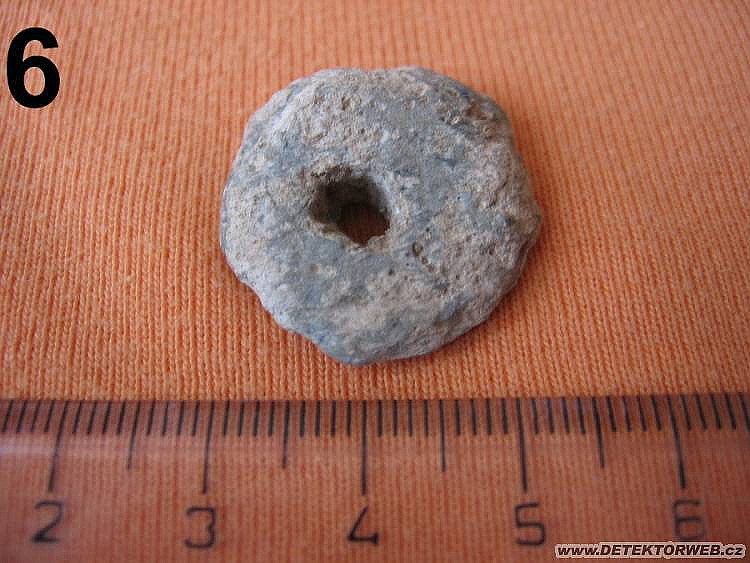 Nevím co si o tomhle nálezu mám myslet. Nalezen prakticky na povrchu. Materiál asi olovo. Uprostřed dírka. Tak mě napadlo jestli to třeba není přeslen, nebo závaží ke stavu. Ale třeba se pletu. Proto prosím o radu.