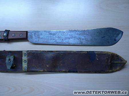 20. 01. 2006, 12:50No páni! Svého času jsem našel úplně stejnou mačetu v jednom nejmenovaném sudetském lesíku. Ležela tam patrně od konce války, jak ji tam nějaký člobrda těsně před odsunem uschoval. Včetně kožené pochvy. Já dosud žil v přesvědčení, že to není vojenská záležitost, ale civilní "hračka". Značení na čepeli se bohužel nedochovalo, ale pochva je naprosto stejná jako ta tvoje včetně značek.