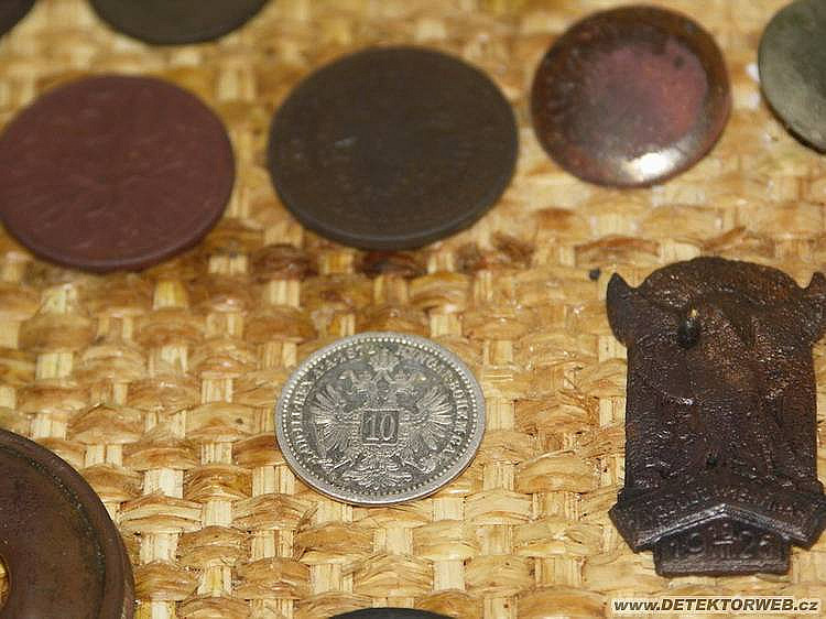 Tak jsem využil příznivého počasí a vyrazil na jednu starou cestu. Kromě normálních krejcárků, jeden krásně zachovalý 1851, na mě také vykoukl jeden stříbrňáček (můj druhý za měsíc, co mrcasím), čtyři knofle a také přezky a různé jiné části postrojů, tedy asi, jelikož jsem nováček, tak se ještě tolik nevyznám. Kdyby je někdo dokázal přesněji určit budu mu velice vděčný... Také jsem našel nějaký odznáček, na kterém je datum 19. 7. 1925 a nápis: Svobodu menšinám, o jaké menšiny ale jde, to nemám tušení.