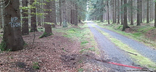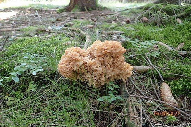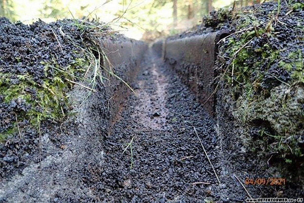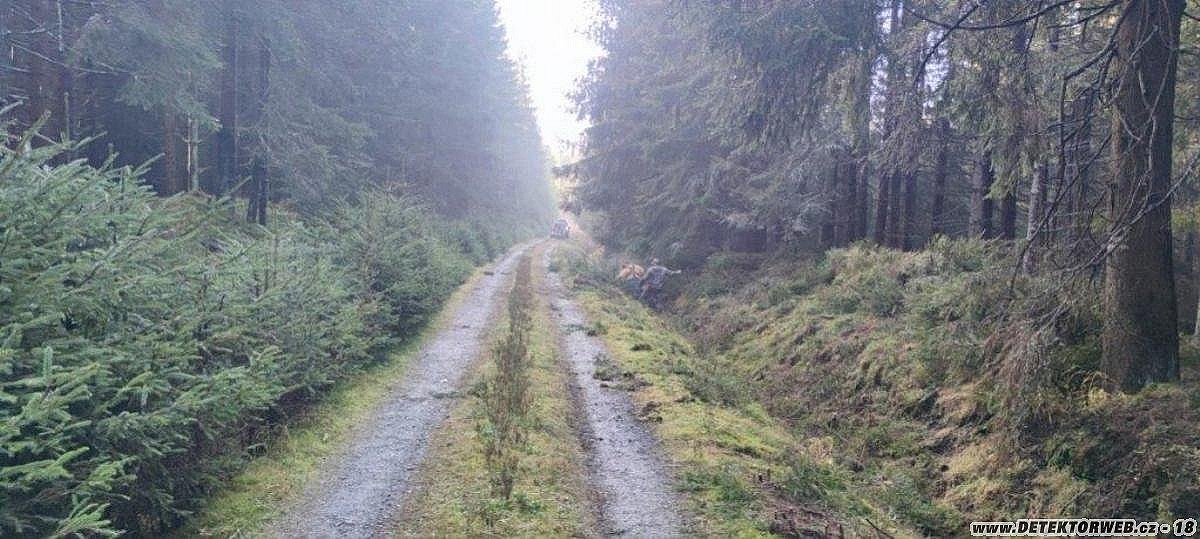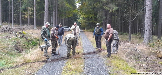 Velká lesní brigáda hledačů z "Klubu hledačů HP Tachov" byla svolána na 16. a 17. října 2021. Bylo naplánováno čištění ocelových svodnic vody v barevně vyznačených cest a vyřezání náletových stromků v příkopu u cesty (označeno zeleně).Když mi hledači řekli, že bude brigáda na čištění ocelových svodnic vody, vůbec jsem netušil, o co půjde. Na internetu jsem si našel, že ocelové svodnice vody slouží na lesních cestách, které jsou ve svahu k odvodu vody do postranních příkopů. Při velkém dešti by proud vody, který by tekl po cestě, mohl v ní vymlít koryto a tím zničit cestu. Při čištění v jedné svodnici jsme našli výrobní štítek, a proto víme, že jsme čistili svodnice typu VIAQUA FOREST typ 120, žlab 120 x 110 mm, profil 5mm. Ocelové svodnice vody se pokládají šikmo přes cestu. Některé svodnice jsme museli hledat, nebyly vůbec vidět. Materiál ve svodnici byl jako beton. Ukázalo se, že nejlepší na čištění svodnice byla dlouhá těžká železná tyč. Poslední ocelová svodnice. U cesty rostla - prý jedlá - houba.
