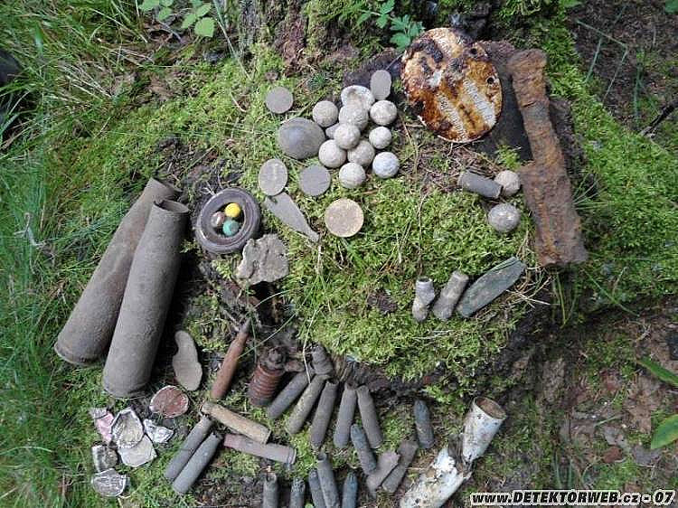 Zdar a Sílu všem hledačům, po neuvěřitelně dlouhé době jsem vyrazil na hledačku do terénu a aby to mělo punc úspěšnosti, tak jsem zvolil směr ke Kajmaním „bažinám“. Slovo dalo slovo a už jsem mašíroval směrem na sever i s plnou lahví Spišské Borovičky... Vyběhli jsme na několik prolítaných míst, kde rostla napoleonka + po II. válce pobíhali hoši v uniformách... Dalo mi to docela práce abychom se dostal do kondice, protože dlouhá pauza v kopání mne „odstavila“ a už to není s výdrží tak jako předtím. No lepší už to asi nebude. V potu a s všudypřítomným hmyzem jsme ze země přece něco vytáhli a „táta Kajman“ zachránil čest naší výpravy nalezením celého ID-éčka. Jinak co se našlo si mrkněte na fotkách a Kajmanům ještě jednou děkuji za pohodové dva dni s detektorem v ruce.