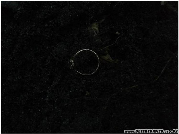 Už mě to tady nebaví a v hlavě se mi honí něco o posraných vlnách a znechuceně otáčím k autu. Než k němu dojdu, tak se už stmívá a já musím projít fekálním územím a tak našlapuji velice oparně, abych si domů nenesl na botě nechtěný nález. Asi pět metrů od auta je tu poslední signál. Přemýšlím, jestli ho mám vůbec kopnout, ale poslední je poslední a tak jdu na to. Z hlíny vykoukne malý prstýnek. Skoro ho už nevidím a ve tmě se jeví jako stříbrný s rytou šiškou na vrchu. No alespoň něco, prozkoumám ho až doma. Na světle se ale vše jeví jinak. Prstýnek se zlatě leskne a šiška nahoře není s rytinou, ale je v ní zasazeno 16 nádherně třpytivých kamínků (jeden navrchu, okolo něj pět a osm v druhé řadě dole). Jsem téměř přesvědčen, že je to gold, ale bohužel nemá punc. Jak se na to místo dostal, snad ani vědět nechci.