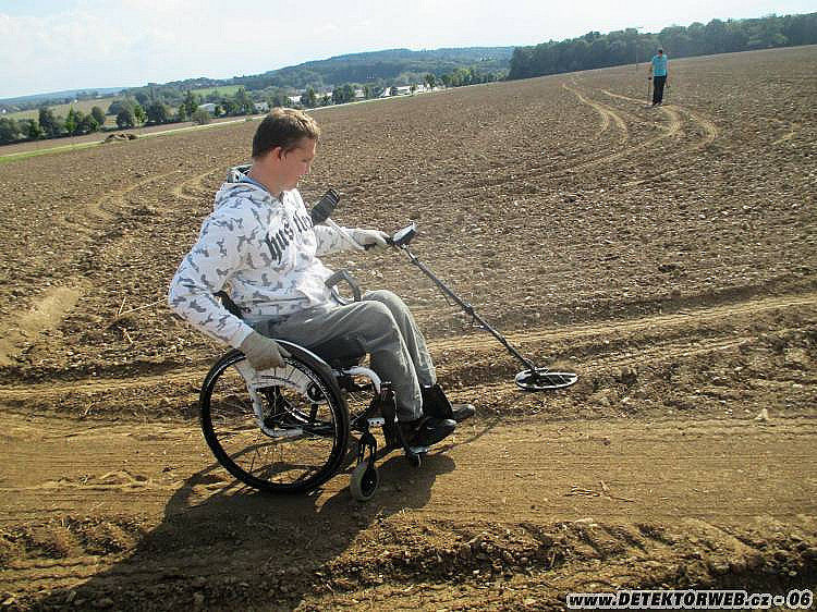 Je tomu asi rok a půl kdy mě volal zákazník a chtěl poradit s výběrem detektoru. Což se děje každý den a není na tom nic neobvyklého, ale zde bylo a vcelku mě to představilo. Dotyčný mě řekl, že je na invalidním vozíku („na káře“) a že by chtěl také hledat. Upřímně musím říci, že jsem si to zpočátku moc nedokázal představit. Přeci jen vozík je hromada železa a hlavně s velkými koly na bocích, na které bude detektor samozřejmě reagovat, když bude cívka příliš blízko. K tomu většinou nerovný terén, kopaní atd. Ale nakonec jsme se přece jen dopracovali k detektoru, který by měl dle mého názoru vyhovovat, a mne pochopitelně zajímalo, jak se se všemi nástrahami čerstvě zrozený hledač popere.