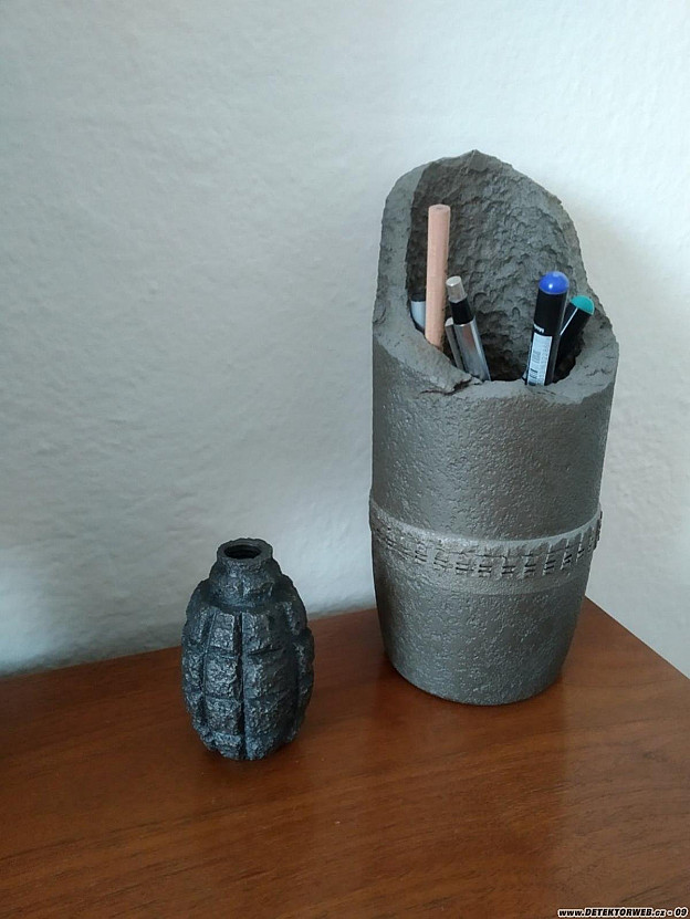 Doma jsem je pod tekoucí vodou opatrně očistil jemným štětečkem a spatřil jsem kráčejícího lva s korunkou. Průměr je cca 38 mm. Nejdříve jsem si myslel, že jsem našel pečeť z nějaké listiny. Stačilo trochu zapátrat na internetu a věděl jsem, že mám textilní plombu. Ale odkud? Lev kráčí v nějakých vlnách či kopcích, provedení se mi jevilo hodně archaické a v okraji jsou snad i zbytky opisu (napravo od hlavy lva). Vzpomenul jsem si na znak Karlových Varů, kde lev kráčí ve vodě. O možném stáří jen polemizuju. Dočetl jsem se, že textilní plomby se používaly už ve středověku a největší rozmach nastal v 16. století. Procházel jsem internet a objevil sběratele plomb pana Mlýnka z Vratimova. Oslovil jsem jej s prosbou o pomoc. Poslal jsem mu fotky a napsal bližší informace o nálezu. V odpovědi mi zaslal obce a města s podobným znakem. Jeho odhad je, že by se mohlo jednat o Lipník nad Bečvou. K případnému stáří plomby se nevyjádřil. Jsem mu za jeho snahu vděčný a budu pomalu pátrat dál, třeba mi zde někdo taky pomůžete. Jenom pár kroků od místa nálezu plomby jsem kopnul pětifenik. Z tohoto materiálu vždycky potěší. Po hodince jsem narazil na větší železo a vykopal jsem prázdný ruský granát F1. Byla v něm akorát hlína a kořínky trávy. Už je z něj těžítko na psacím stole. V průběhu hledání jsem neustále nacházel hliníkové střepiny z německých zapalovačů AZ 23, bylo to až otravné. Narazil jsem na místo tak 3x3 metry a když jsem kopal šestý hliník, rozhodl jsem se, že další signály už nechám být. Popošel jsem ne víc jak deset metrů a zase pěkný signál. Už jsem viděl další hliník, a tak jsem kopnul do země bez nějaké opatrnosti. Naštěstí jsem se trefil dobře, protože ze země doslova vylétl pěkný bronzový prsten. Teď mi to nedalo a kopal jsem veškeré signály v okolí, ale už jen hliník. I když jsem tam byl až do oběda, už jsem nic rozumného nenašel. Byl jsem tam zajetý ještě několikrát a musím konstatovat, že od té doby se štěstí unavilo a já chodím více jak tři měsíce s prázdnou. Ale nevzdávám to, věřím, že můj čas zase přijde. Mějte se všichni dobře, užívejte léto a ať se vám daří!