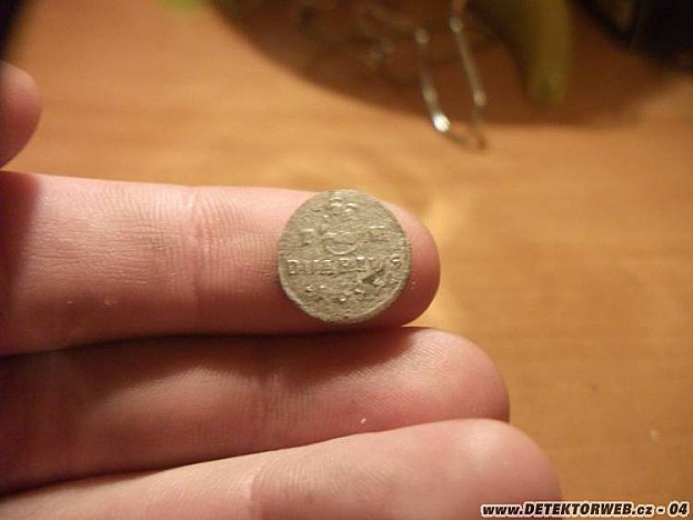 Od středy do neděle jsme si udělali výlet na Slovensko do lázní Piešťany, tak jsem si sebou vzal detektor a asi 10 hodin jsem si za ten pobyt pohledal na pěkném zoraném kopečku nad městem. Nejvíce mě potěšil 1 duarius z roku 1697 pěkný stříbrňáček. Také jsem našel dva 2 hellery, 2filler, 5haléř, slovenský válečný 50ti haléř + dalších pár neidentifikovatelných měďáků, co jsem tam nechal, také vojenský knoflík a nábojnici okolo 23 mm výrobce btp z roku 53.