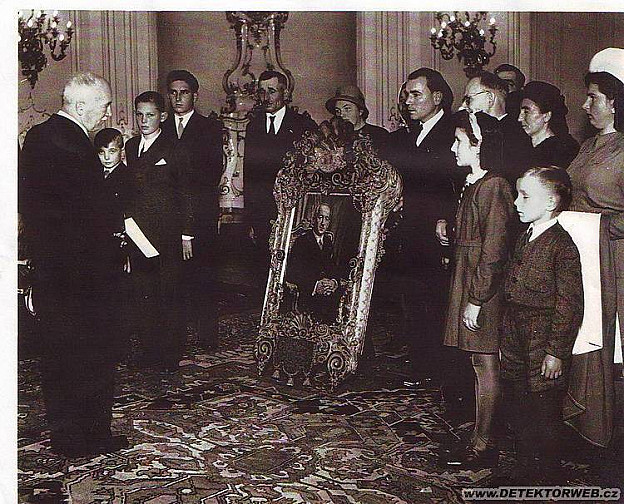 Po válce pan Bláha dal zhotovit rám k obrazu u pana řezbáře prof.. Pitruse. Hotové dílo pak spolu s tehdy ještě dvanáctiletým Otakarem byli příbuzní předat osobně prezidentu Benešovi na Pražském hradě dne 22.10.1945.