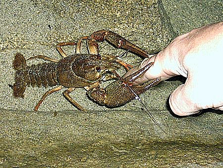 A nyní něco z nočního focení na dně starého zatopeného lomu prst je můj jsem sice jezevec ale narozen ve znamení raka takže mi bylo jasné že rak rakovi nic neudělá očichal si mně a vyrazil dál shánět něco k snědku