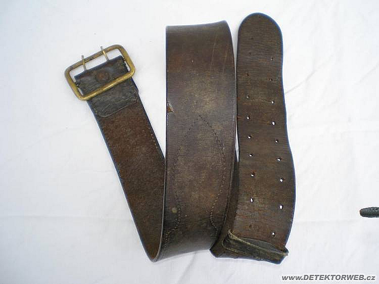 Měl jsem možnost prošmejdit jednu starou chalupu z které vypadla stará vojenská čepice na motorku ze zeleného sukna /1,2/, kožená brašna s troškou krmení do 98k ačen / 3,4/, klasický kožený wehrpásek, který někdo tzv. předělal na civilní verzi /5/ a ještě další kožený opasek s mosaznou sponou /6,7/, značený písmeny AFP u kterého prosím o pomoc při určení a ještě popruh na malou polní /8/.