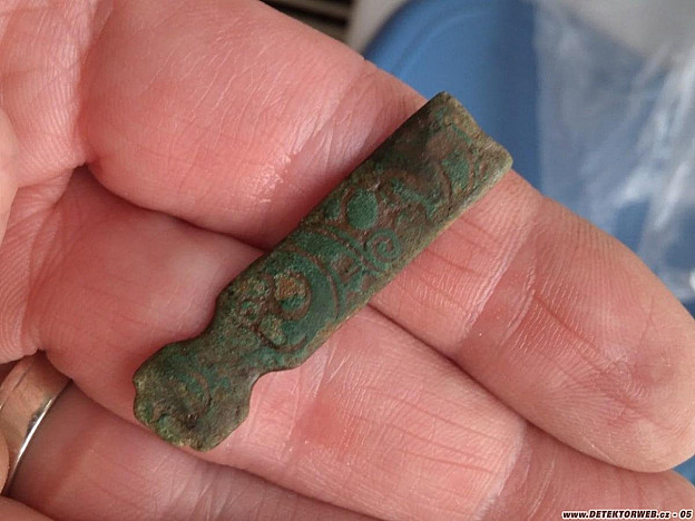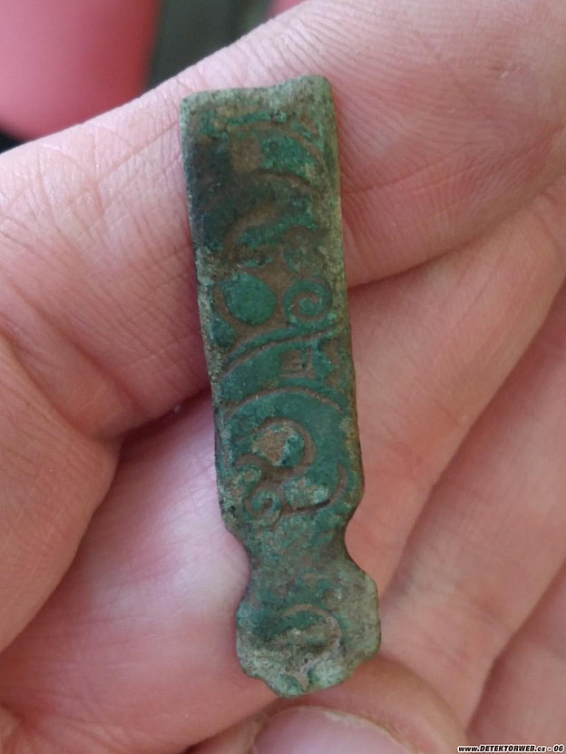 Zdar hledači, na poli jsem opět našel nějaký bronzový pásek. Z jedné strany hladký z druhé zdobený. Velikost 4 cm. Dále torzo asi spony. Poradil by někdo, o jaký druh se jedná? Budu to, ale stejně dávat odborníkovi.pov