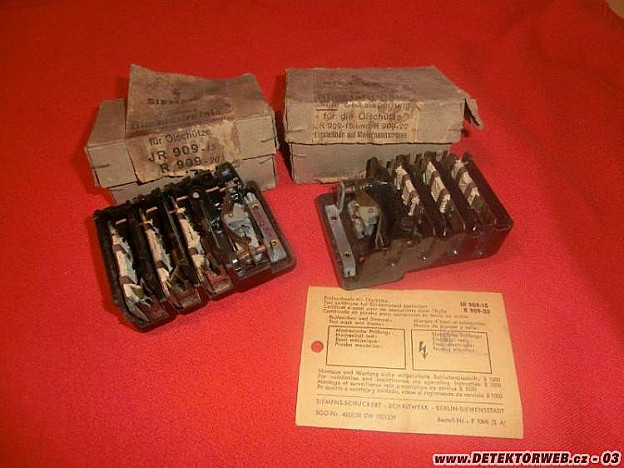 posílám několik nálezů z poslední doby. Víko je od německé bedny na padák, bohužel zbytek skončil v kovošrotu. Radost udělal hlavně německý kalendář z WWI. Čepicový odznak by měl být z brigadýrky finanční stráže, baterka bohužel nefunkční (chybí el. vedení ve víčku) tuším německá používaná civilně i armádou. Dále kniha o německém pohledu na anglickou politiku s vloženými letáčky a RU dvoukoruna. Plaketka ze studentského kongresu v Praze 1945 a německé výplatní sáčky z doby totálního nasazení (Silva-Mettalwerke GmbH, Genthin). O pomoc s určením prosím u elektrosoučástek. Mělo by se jednat o proudové chrániče, ale nedaří se mi určit správně dataci. Tipoval bych to na 40 - 50 léta.
