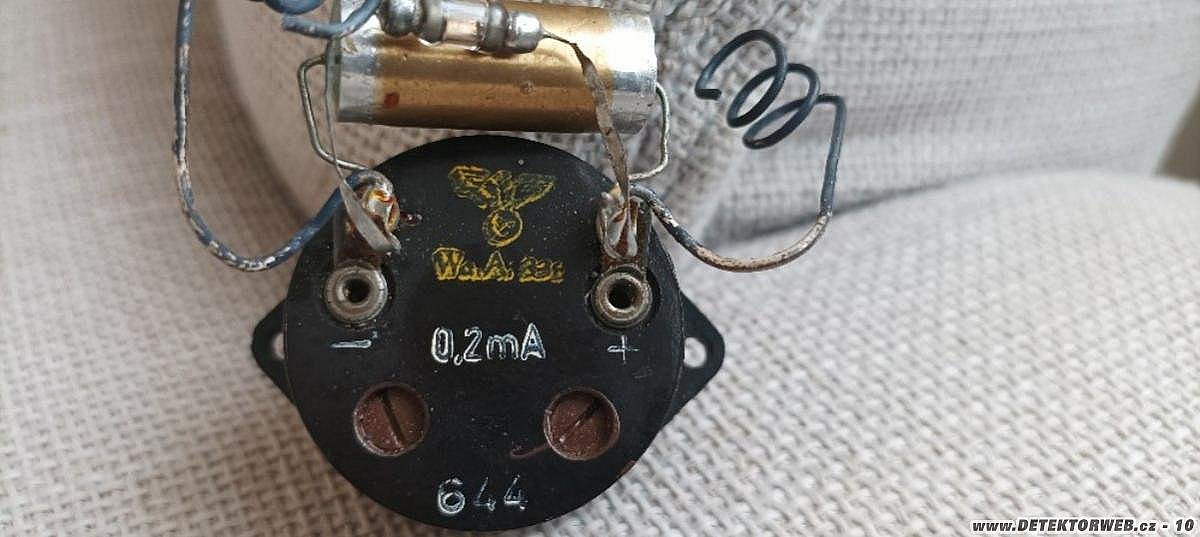 23. 07. 2021, 22:15Ten miliampérmetr je z německé radiostanice řady Fusprech používané v obrněných vozech, např. Sd. Kfz. 251 (hakl). Další s dvěma očkama bude z přenosné stanice Torn. Fu. b. Ten bez krytu nevím. Bohužel nejsou v moc dobrém stavu.