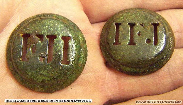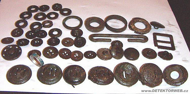 10. 05. 2008, 17:50zezedu byl železný plech se sponou, to však uhnije a zůstane pouze mosazný výlisek F. J.I.