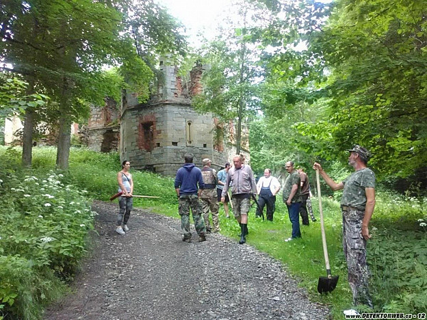 První setkání tachovských hledačů po kovidovém roce,Sešli jsme se ráno v 9,00 hod 3.7. 2021 v garáži u Vlasty Matějky ve Světcích. Byly připraveny nápoje a k pohoštění byla ovarové kolena. Saša Szabo přivezl celý dvoupatrový dort ze svých narozenin. Ta hůlka je mojeTrochu se povídalo a pak nás Vlasta zavedl za svůj dům do lesa k záhadným kamenům. Kameny jsme trochu očistili a objevily se na nich záhadné vysekané tvary. Domnívali jsme se, že bychom kameny mohli postavit, ale nepřišli jsme na to, k čemu mohly sloužit. Kameny jsou dlouhé asi jeden metr a silné asi 25 cm. Možná že pochází z nějaké kašny nebo fontány. Když se dozvíme o těchto kamenech něco více, jsme ochotni tyto kameny opravit a postavit. Ale pozor! Vedle těchto kamenů je asi metrová díra. Pokud se budete na kameny chtít podívat, vlevo od naší skupiny je ke kamenům ze svahu vysekaná pěšina. Přinesené nářadí na průzkum kamenů jsme ani neumazali. U "milníku času" u Jízdárny jsme sešli ze stráně zpět ke garáži. Paní Matějková si došla na své tajné místo a za chvilku nám přinesla ukázat dva pěkné hřiby.