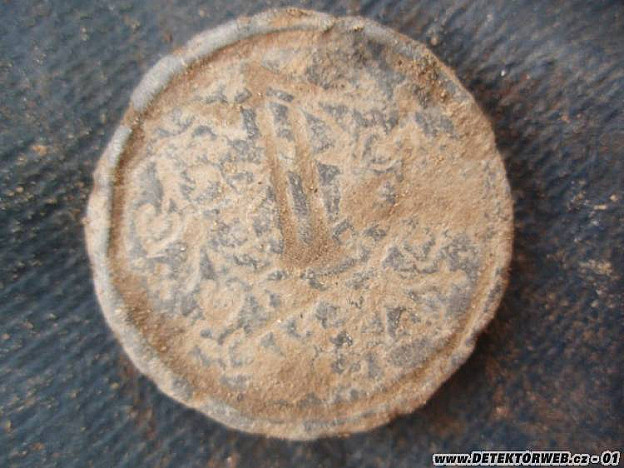 13. 06. 2014, 10:16Já bych to typoval na nějaké rychle zhotovené pečetítko, mám podobný nález, je na něm dvacetník Karla I. , je zhotovené z olova.