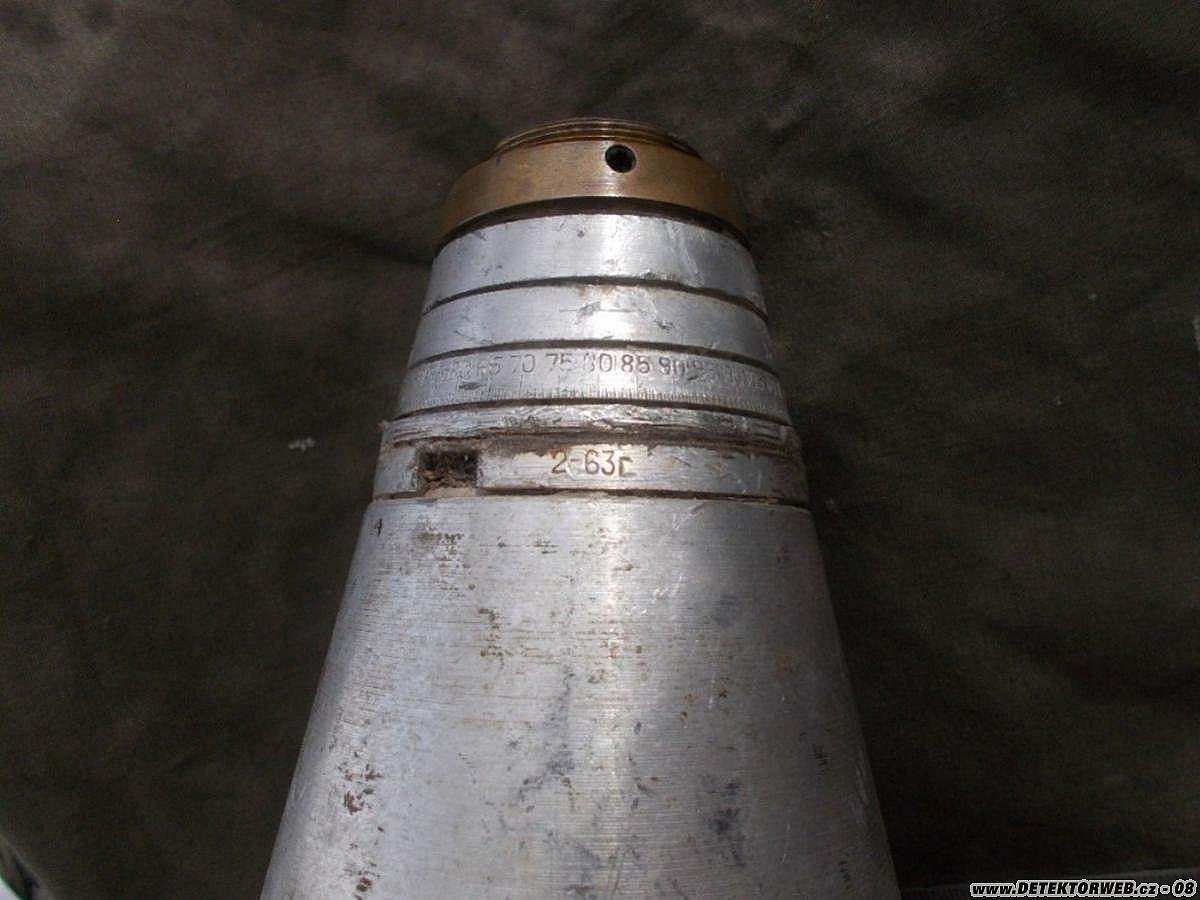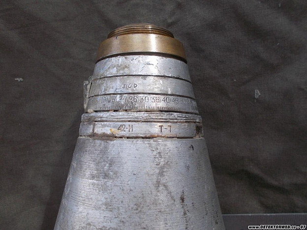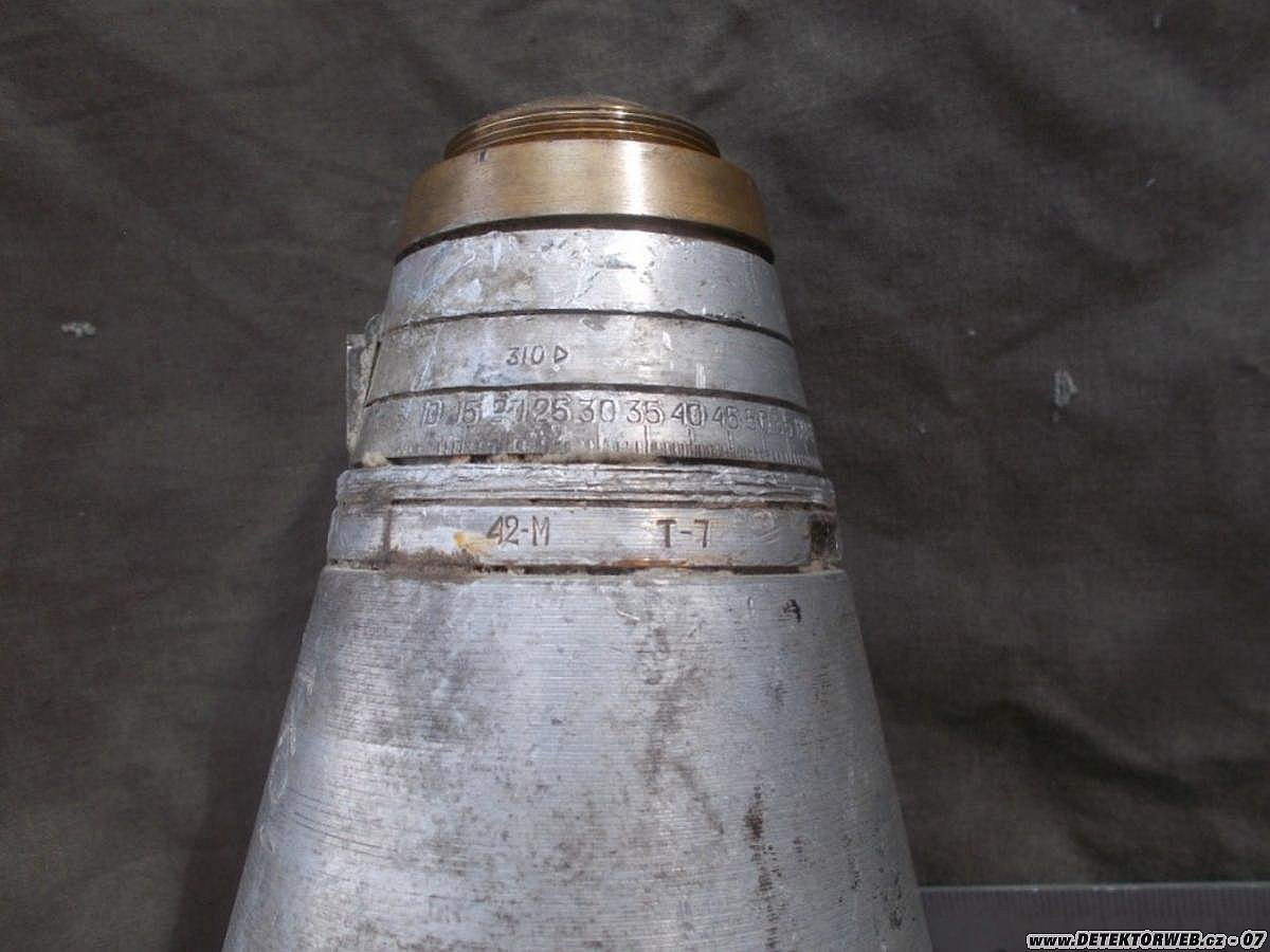 Zápalovač je náhradní nz. 11 (Náhradní zapalovače byly ve skutečnosti celokovové balistické šrouby) používali se na náhradních střelách ráže 82mm až 152mm